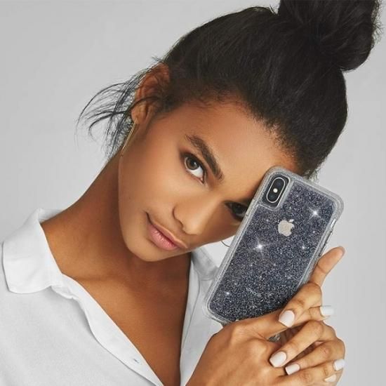 シンプルなケースながらも、贅沢に配置されたクリスタルがiPhoneXS Maxを美しく演出!