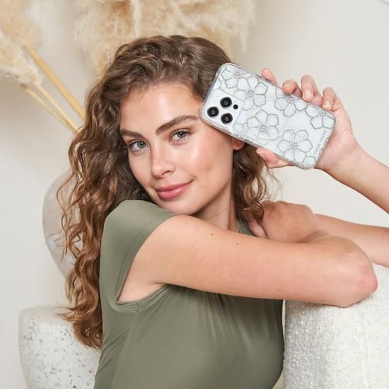 【天然石を使った花柄のケース】iPhone 15 Pro 用 Floral Gems-Gold Antimicrobial 抗菌仕様 MagSafe®完全対応